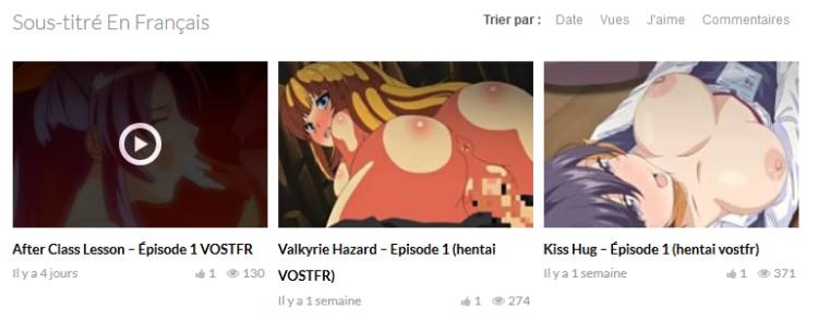 Les vidéos hentai VOSTFR bien sur, et c’est pour cela que nous travaillons d’arrache-pied pour vous en proposer de nouvelles. Mais ce n’est qu’un début ! Bien sur, l’idéal serait d’en avoir tous les jours, non censurée, et STFR, mais elles ne sont pas si nombreux sur le web, c’est pourquoi je ne peux pas en mettre aussi souvent que je le voudrais. Mais pour palier ce soucis, vous avez remarqué dans sans doute que l’on retrouve une meilleure sélection de vidéo depuis quelques temps ? Certes certaines sont encore censurée, mais elles sont des références dans le monde, d’autres sont non censurées, en 3D ou en VO non censurées, pour bien mater les scènes porno, mais par dessus tout, je m’efforce de mettre que des vidéos qui sont excitantes, pas chiantes, des vidéos sur lesquels on a envie de se branler.