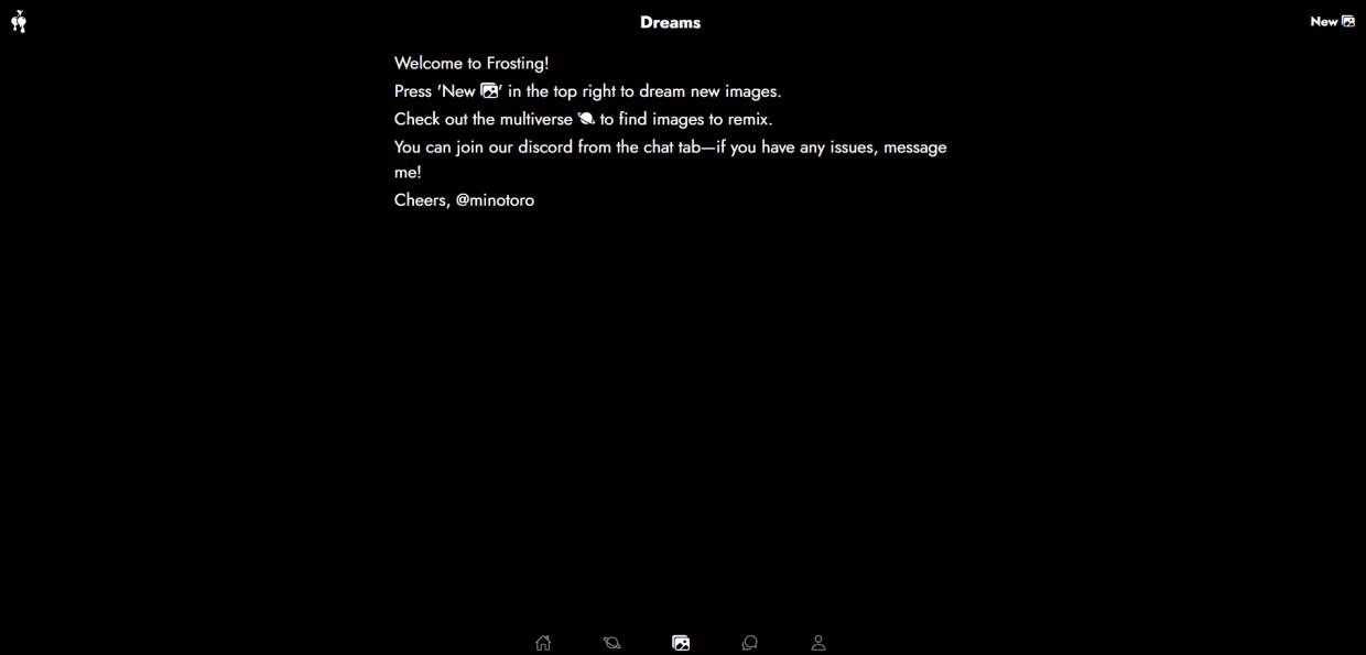 La sobriété est la première force de Frosting.ai. Il ne présente qu’une interface minimale qui permet de créer directement du hentai sans chercher à comprendre les mécanismes complexe de certains autres sites. On ne peut pas faire plus épuré et pour commencer à créer quelque chose, il vous suffit simplement de cliquer sur la petite icône en haut à droite : “New”, c’est aussi simple que cela, et c’est gratuit.
