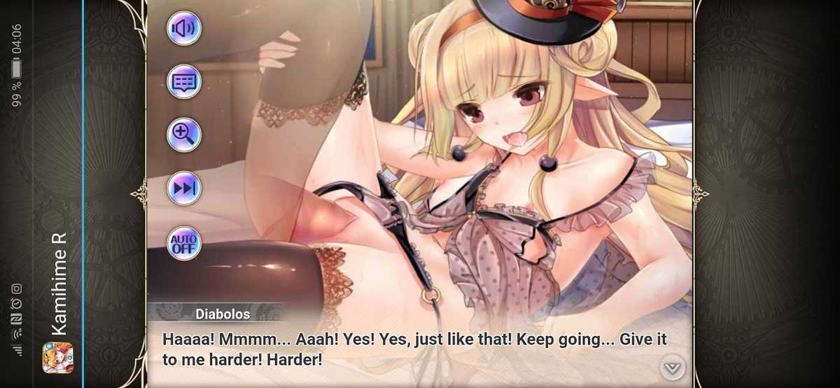 Kamihime Projet R n’est pas seulement un free to play RPG, c’est aussi un visual novel qui vous plongera au cœur de l’histoire de ce monde mais aussi de chacune de vos filles… Vous allez en effet pouvoir débloquer des épisodes entièrement consacrés à chacune d’elles. Les scènes hentai se débloquent au fur et à mesure que vous avancez dans le mode histoire mais vous pouvez aussi en obtenir certaines dans le Gacha. Les scènes sont magnifiquement bien réalisées et en plus elles sont entièrement animées ! C’est vraiment plaisant de voir ça sur un jeu hentai mobile.