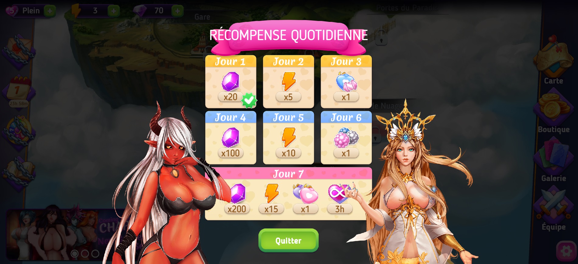 Soyez sûr de bien impressionner toutes les filles avec votre talent, car même les dialogues et les regards sont suggestifs et sexy. Et si vous voulez revoir ces scènes, allez dans la galerie. Les scènes débloquées peuvent être rejouées avec de l’énergie, mais les scènes verrouillées ne peuvent être débloquées qu’avec des gemmes.